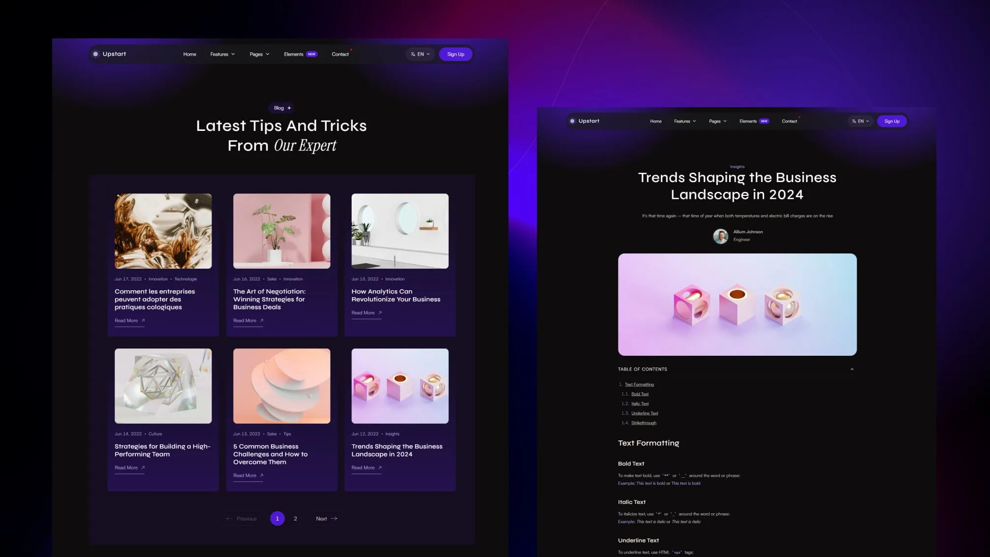 Upstarts stands out with its exceptional features, animations, trendy designs, and attention to detail. It is designed for developers and businesses alike: